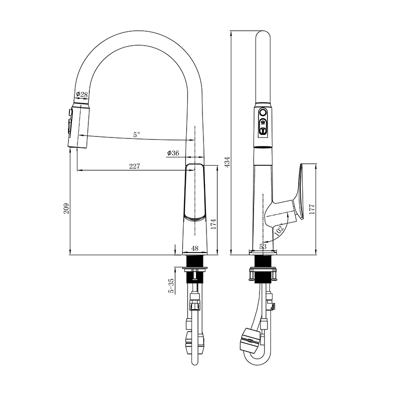 - · 5.Hose: Neoperl Nylon hot and cold hose